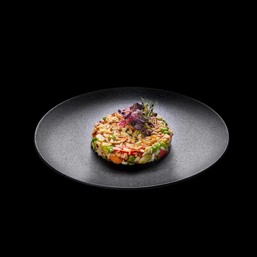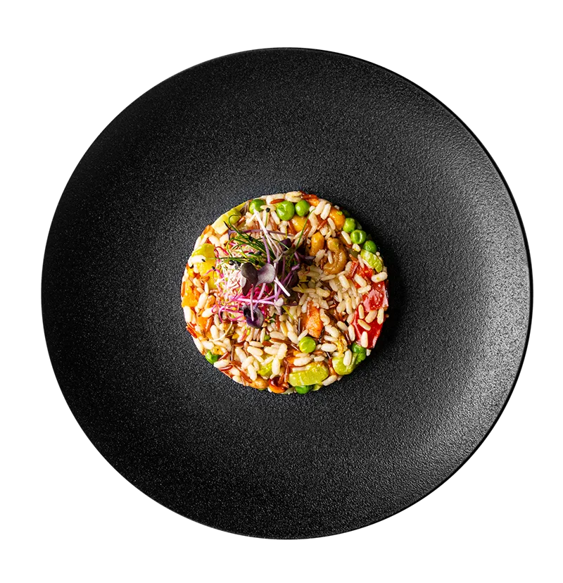 Protagonista è il riso selvaggio, con un patrimonio di antiossidanti di gran pregio, gli antociani. Co-protagonista il cedro, con note agrumate e fresche unito alle verdure, abbonda in fibre. Un piatto ben equilibrato che aiuta l’organismo a depurarsi.