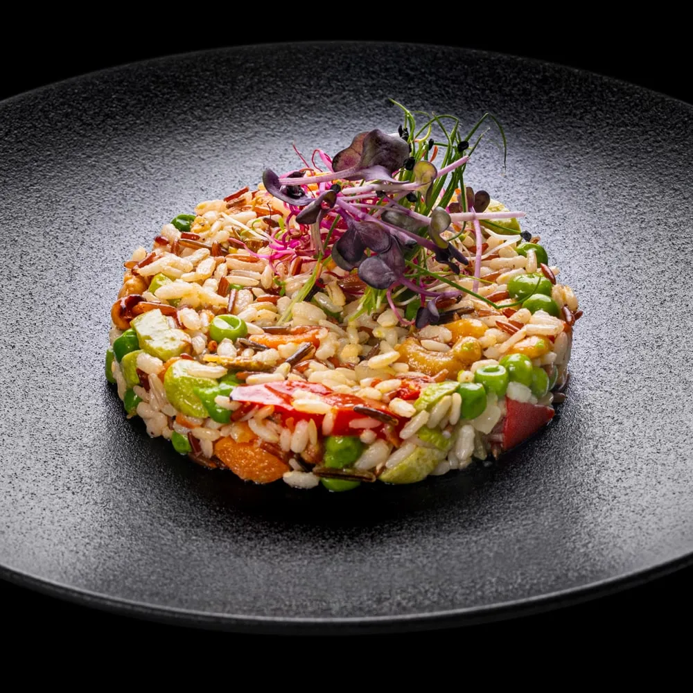 Riso selvaggio con verdure, nocciole e cedro candito.